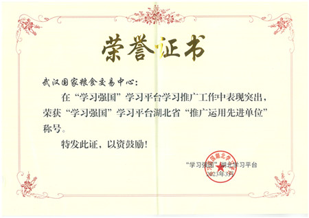 湖北粮网获评“学习强国”学习平台湖北省“推广运用先进单位”